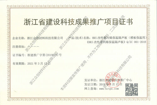 浙江省建設(shè)科技推廣項(xiàng)目證書